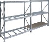 Detail of the Extra High capacity Bulk Rack: 1) 14 guage steel measuring 1 3/4" x 1 3/4" roll formed with 8 bends for extra strength; 2) 12 gauge formed step Z-beams have 3 hooks at each end for positiveconnection.2750lbs cpacity for each lever; 3) 14 gauge deck support stabilize the loads; 4) Welded base plate allows floor anchoring; 5) Boltless design allows horizontal beams to install easily without tools and to adjust easily at 2" increments; 6) Safety pin locks beams in place; 7) 3 kind of decking for your choice a, wood deck - low cost MDF board b, wire deck - allow visibility and ligh, air sprinkler penetration c, steel deck - long lasting, smooth galv finish